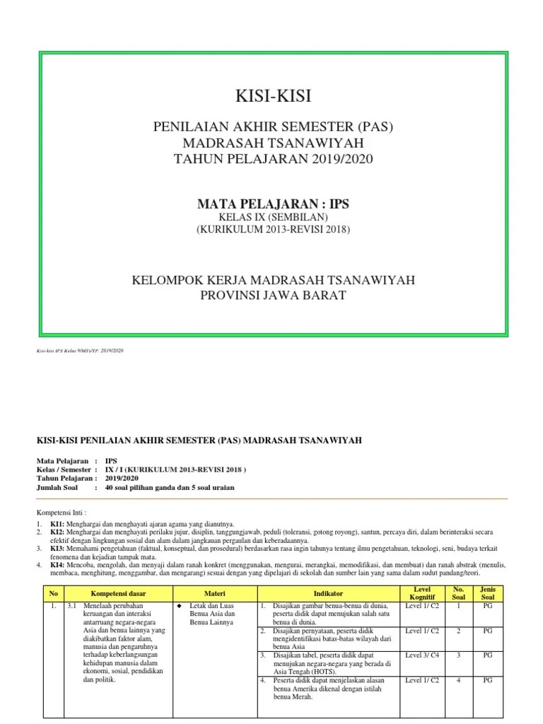 Kisi-Kisi Ips Kelas 6 Semester 2 2020 : Kisi Kisi Dan Soal Ips Kelas 9 Benua Jawabanku Id : Soal penilaian tengah semester (pts) 2 merupakan bentuk evaluasi belajar yang wajib dikerjakan oleh peserta didik.
